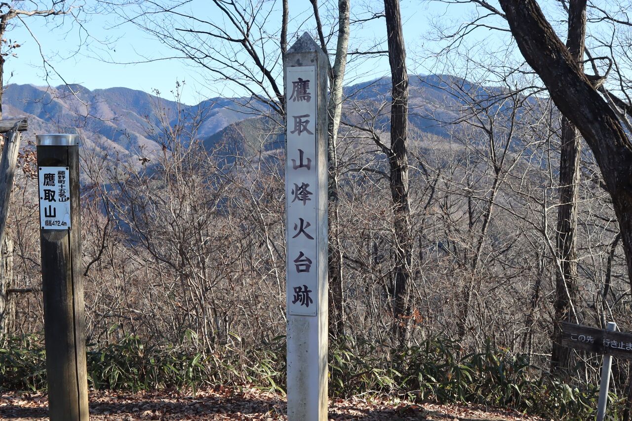 鷹取山烽火台跡とある。一応ここは神奈川県なので相模国だとすると、北条氏のものか。いや甲斐との国境に近い。ちなみに近辺で大きな勢力を持っていた津久井氏は北条にも武田にも所属していた。そういった例は他にもある。誰の管轄下だったのか?