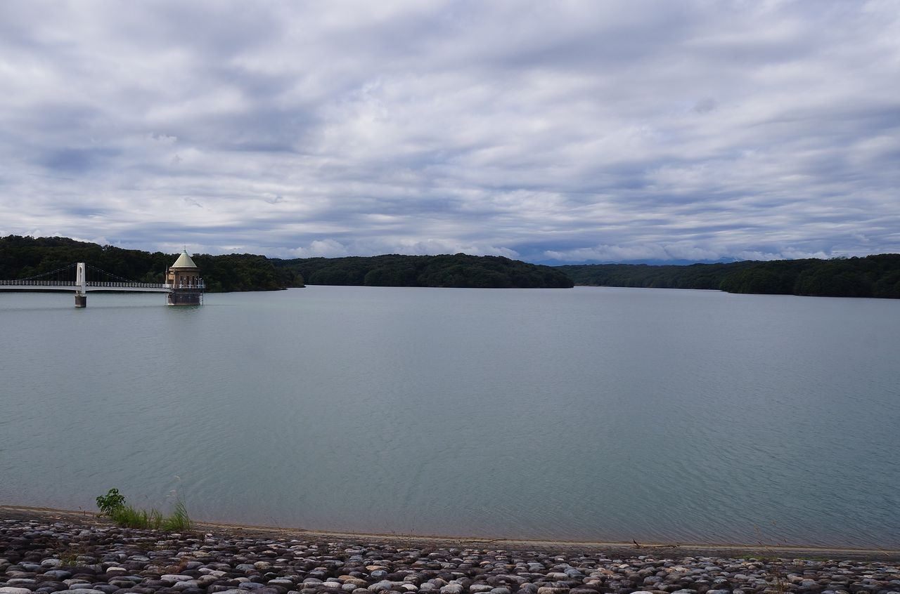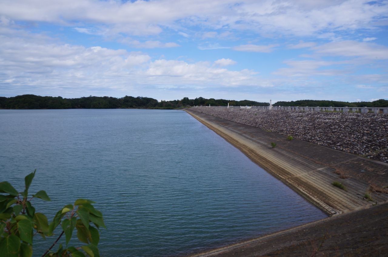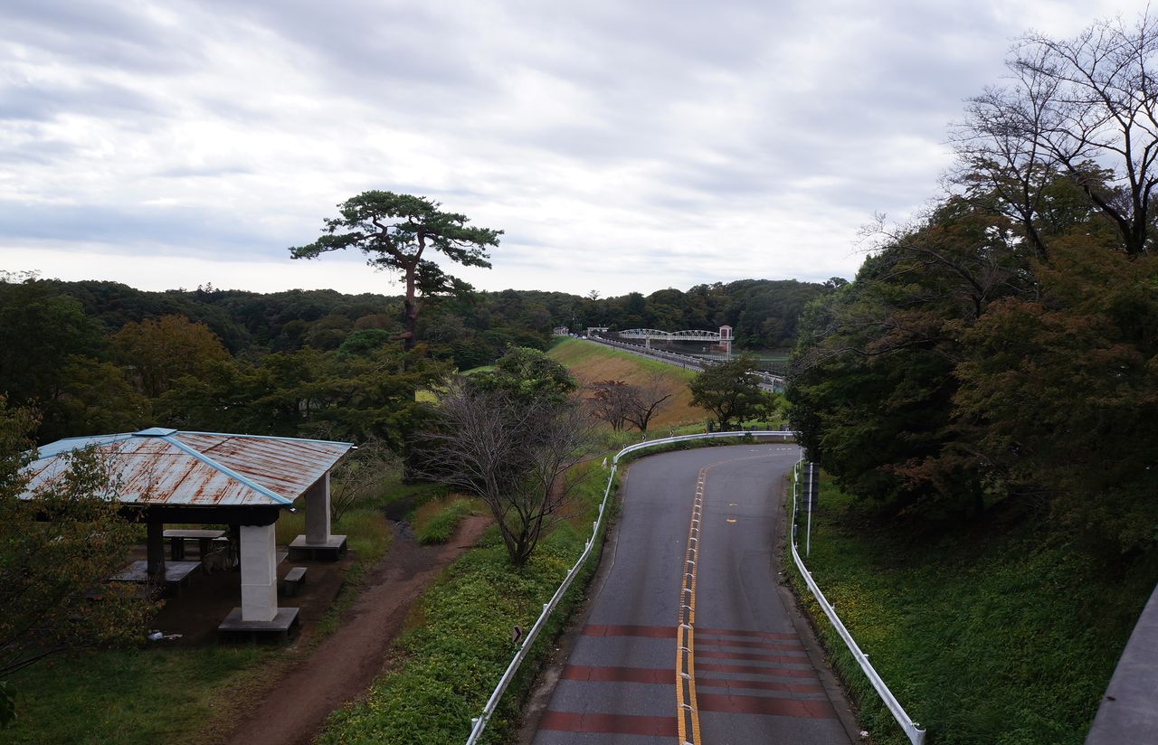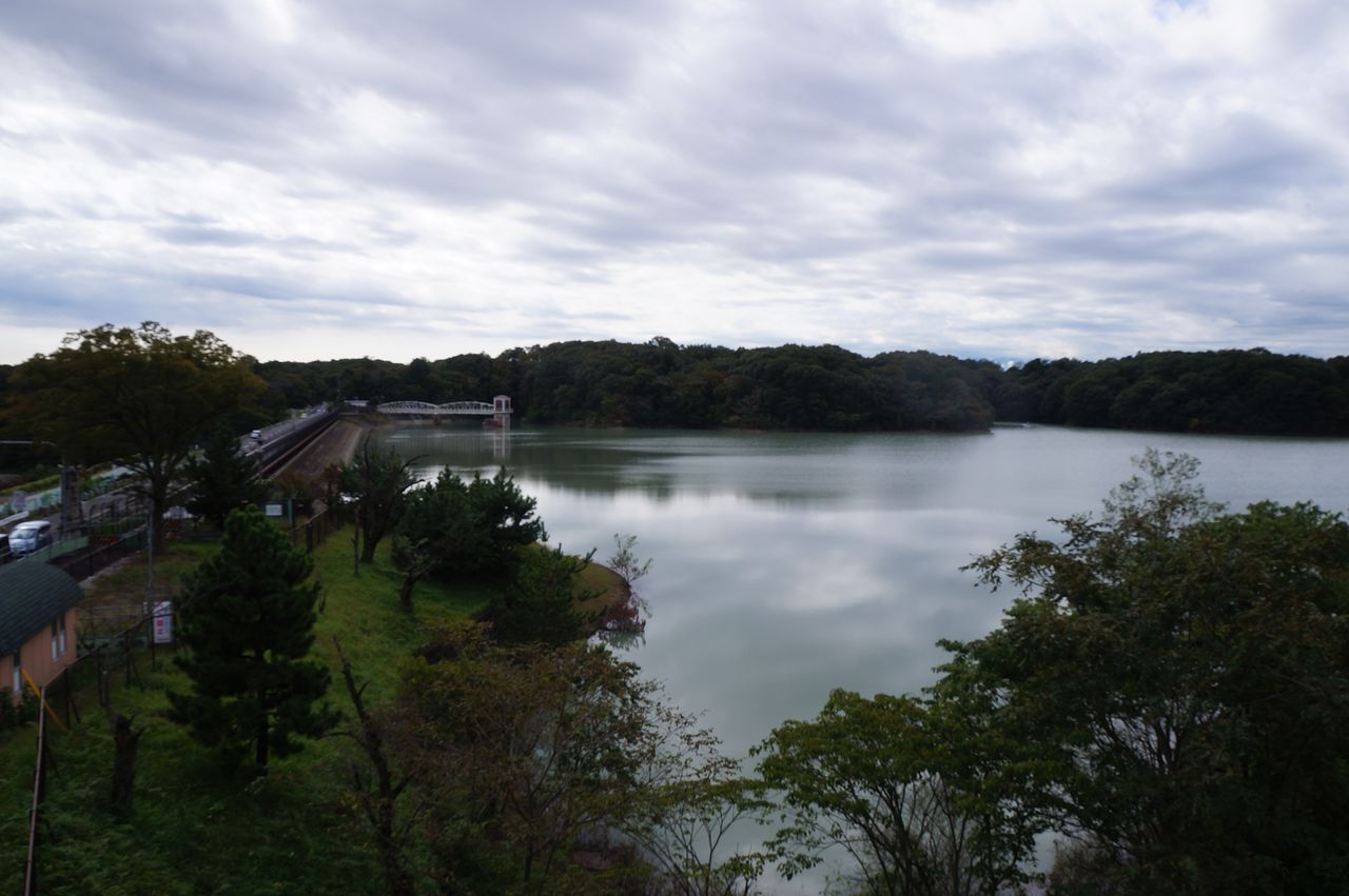 狭山湖堰堤に到着。北の空は晴れていた。