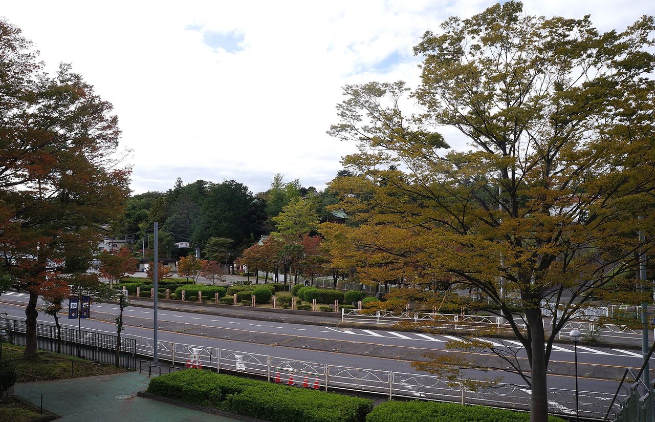 駅前から、広い道路を多摩湖を目指して南下。湖に向かっているのに上り坂。すぐに暑くなり、上着を脱ぐ。