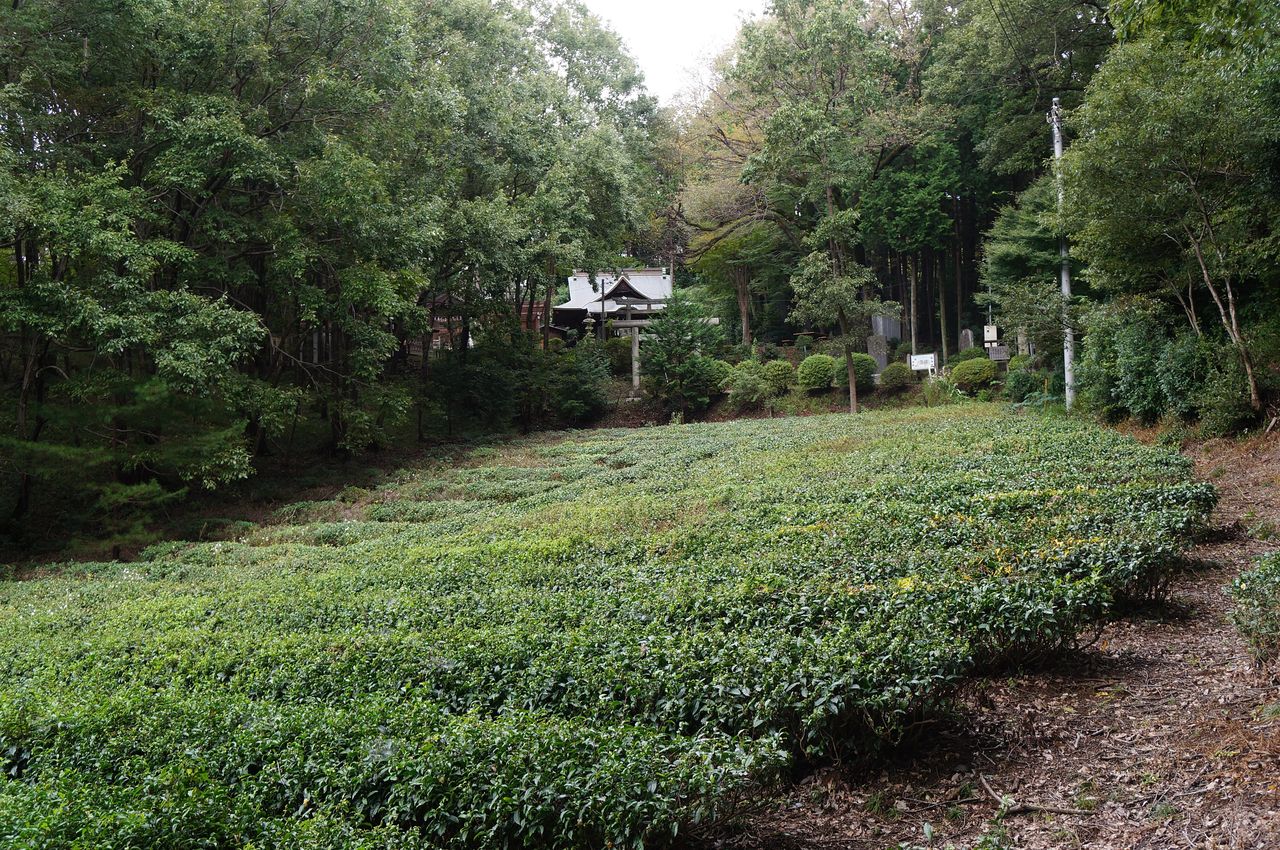 茶畑より、堀口天満宮を振り返る。