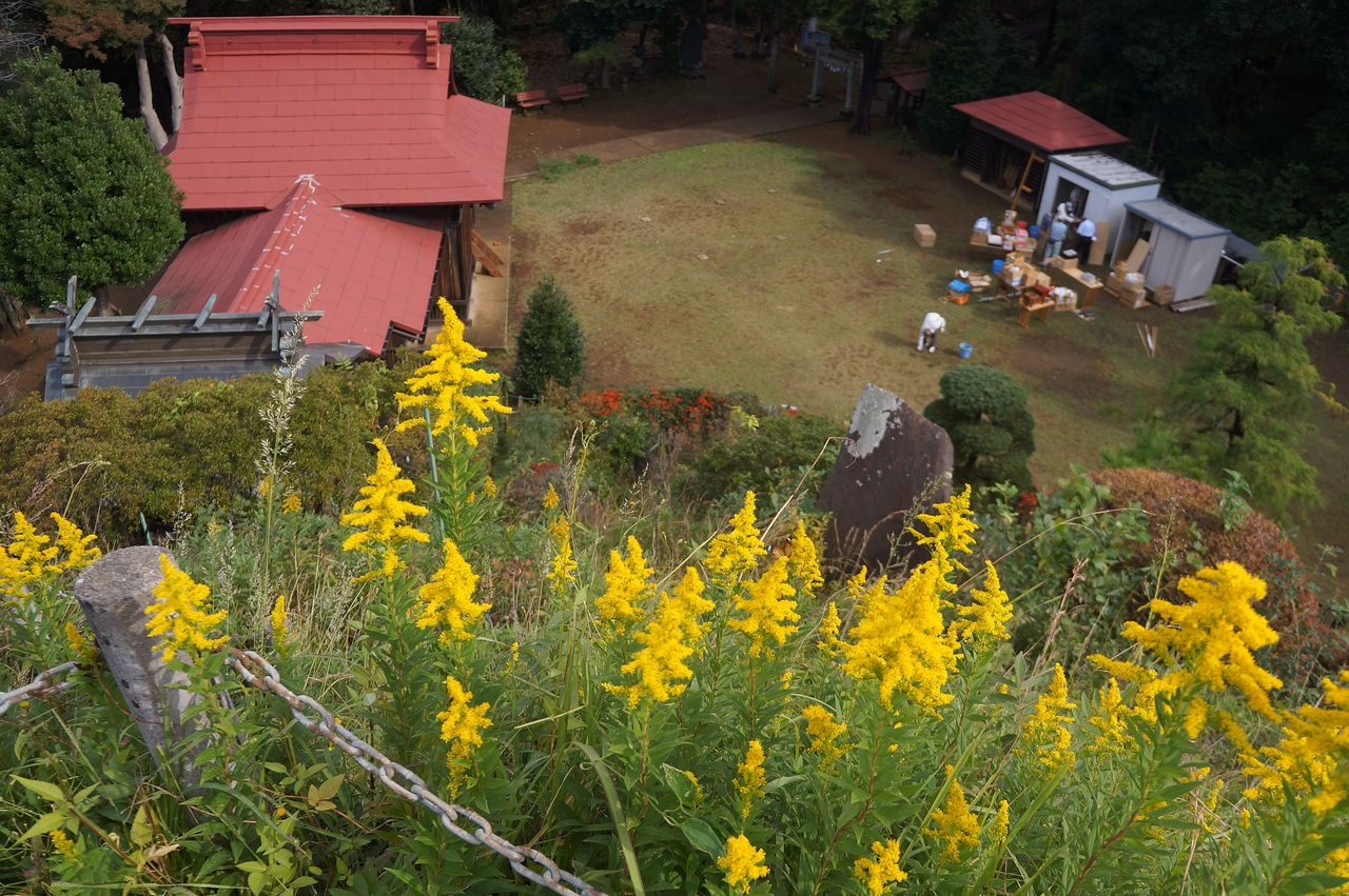 荒幡富士を下る。下は浅間神社。氏子の方々だろうか、何か作業をしていらっしゃいました。