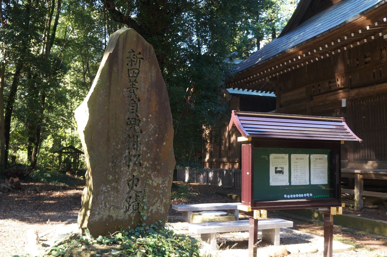 鳩峰八幡宮にて。「新田義貞兜掛松」の碑。鎌倉幕府討伐軍は、すぐ北の小手指原で戦った。