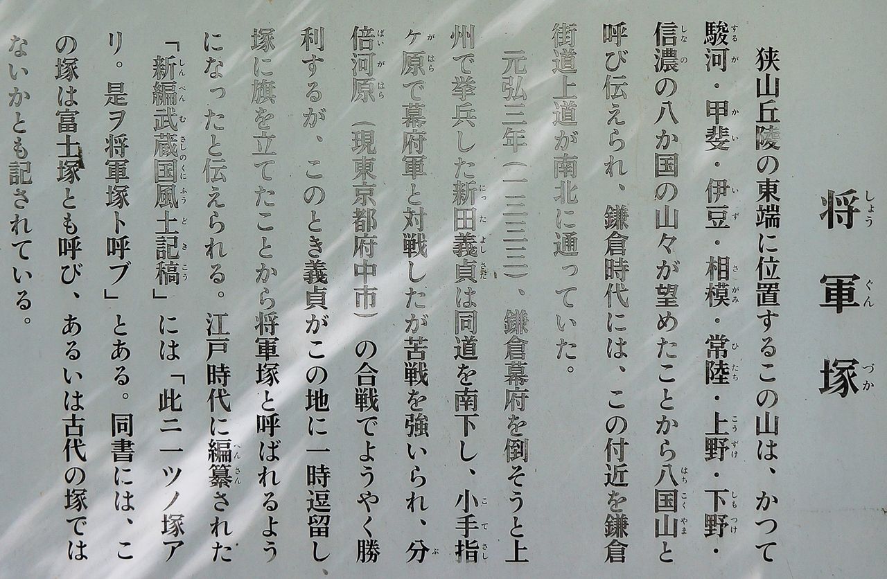 八国山緑地にて。将軍塚。ここは討幕軍新田義貞が旗を立てた所との事。