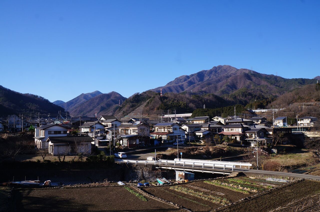 広場から道志の山。