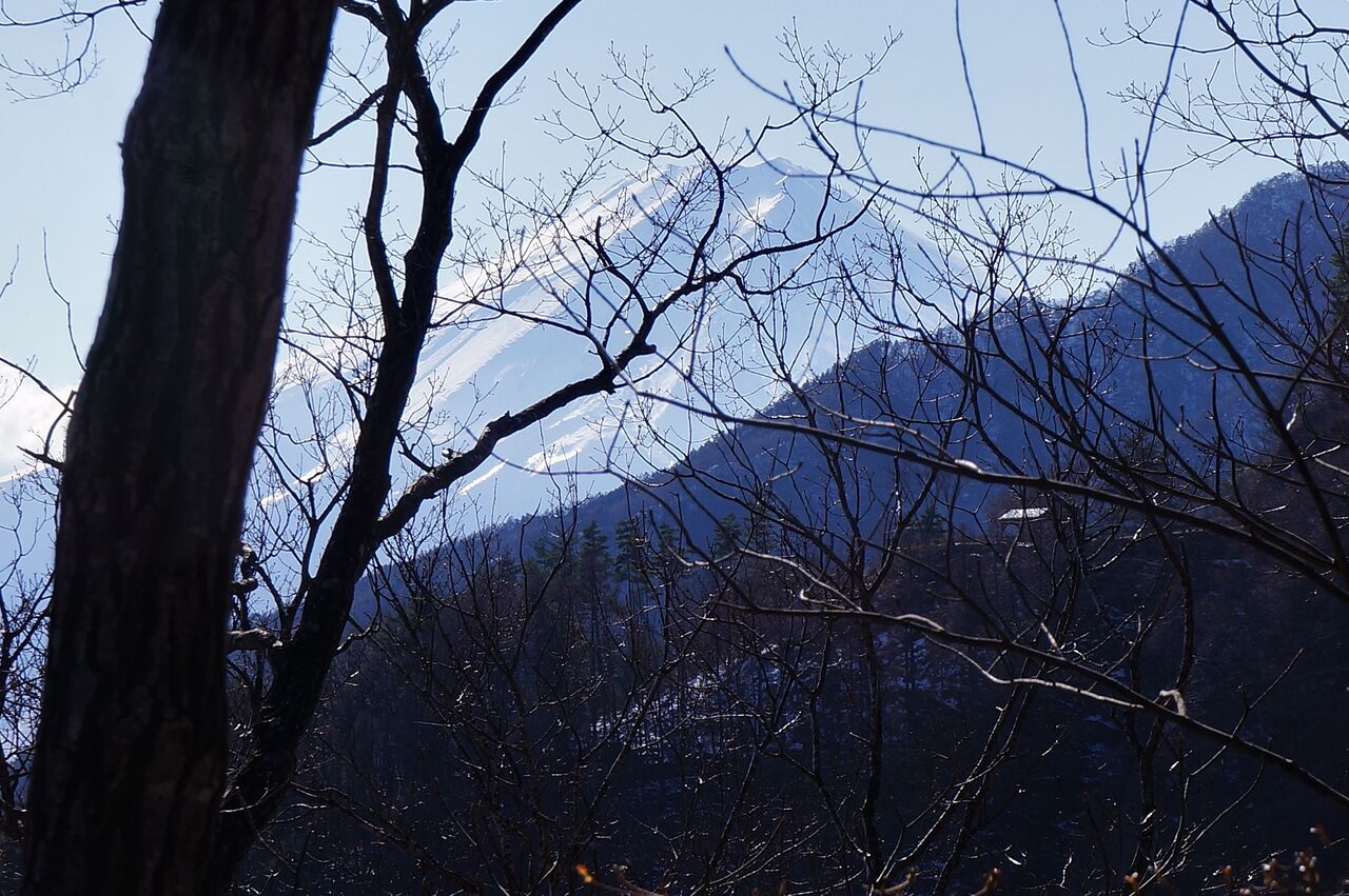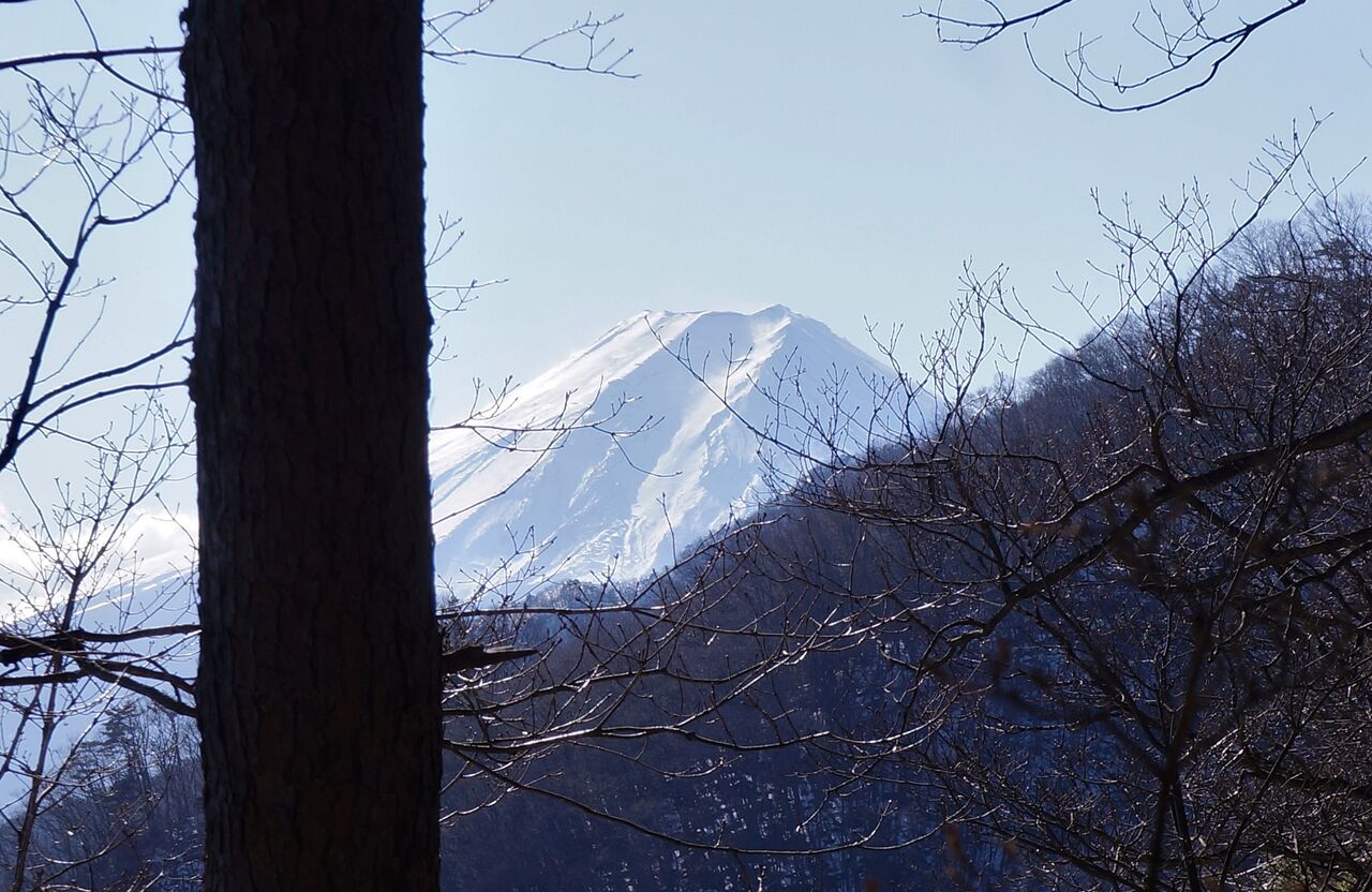 実は、昨日、中央線を挟んで、北東側に位置する秀麗富嶽十二景の山を歩いていました。ぶなじろうさんがすでに歩かれた山です。つまり、別の位置から同じ富嶽を眺めていたということになります。ただ、そちらは写真で見る程の雪はなかったですね。