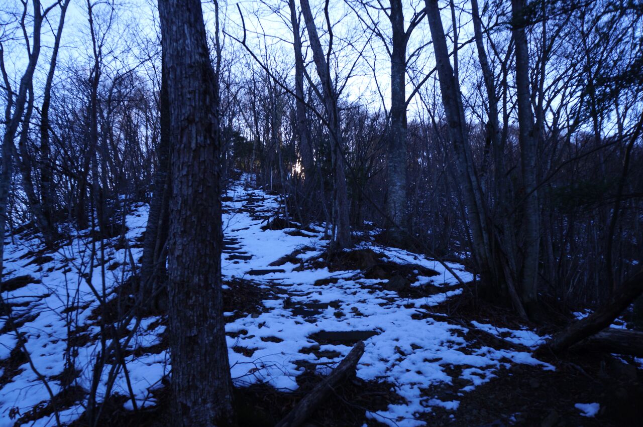 ぶなじろうさんの一時間前の電車で駅について、角研山、鶴ヶ鳥屋山、高川山と縦走しましたが、私が主稜線を歩いた時には私以外に足跡はなく。