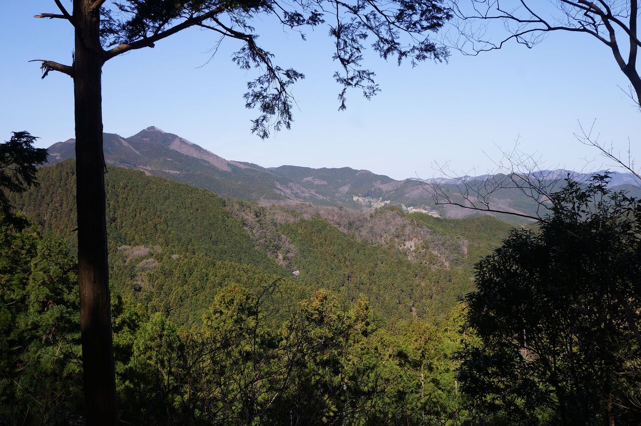 410.3m付近にて。唯一の展望地からは、笠山とその下の栗山集落が見えた。