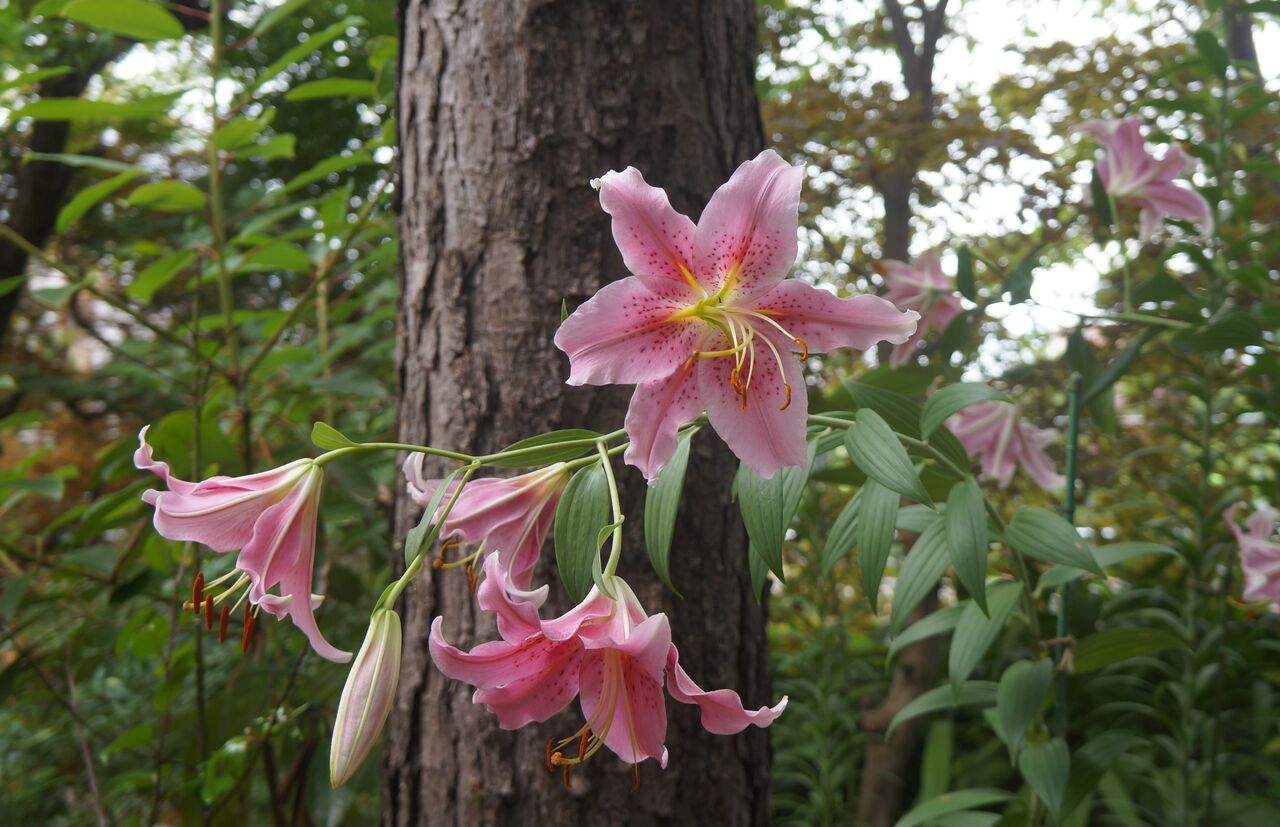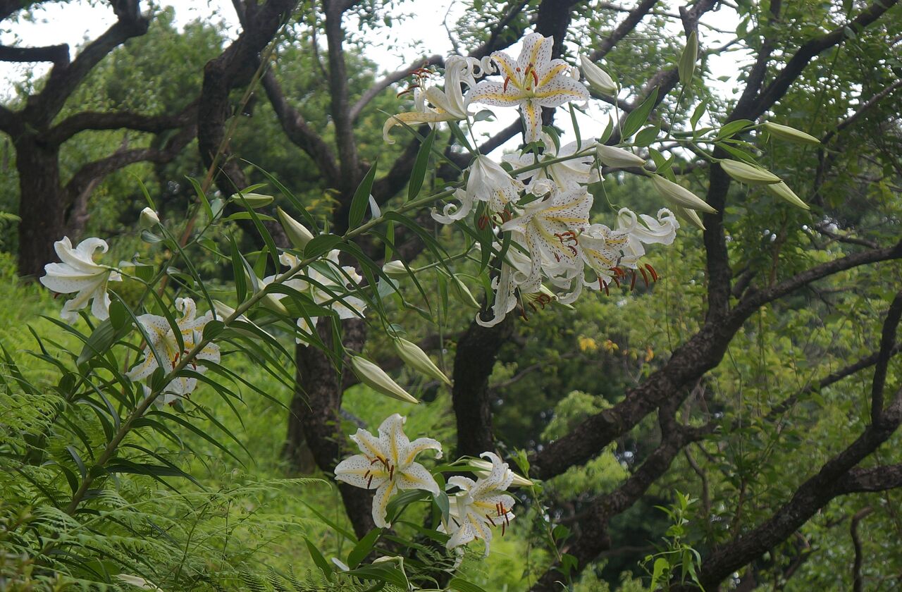 植物振興センター。ユリの花のエンジ色のポツポツをよく見ると、