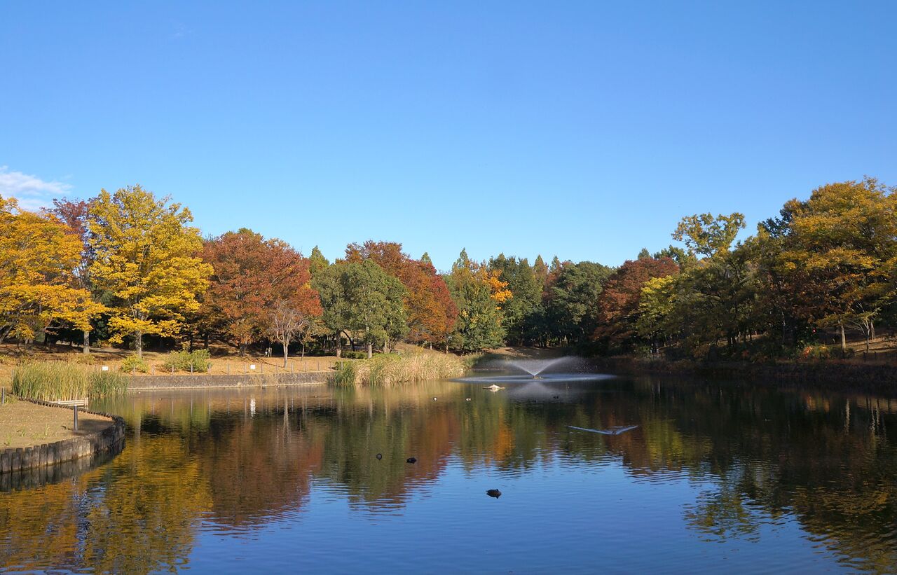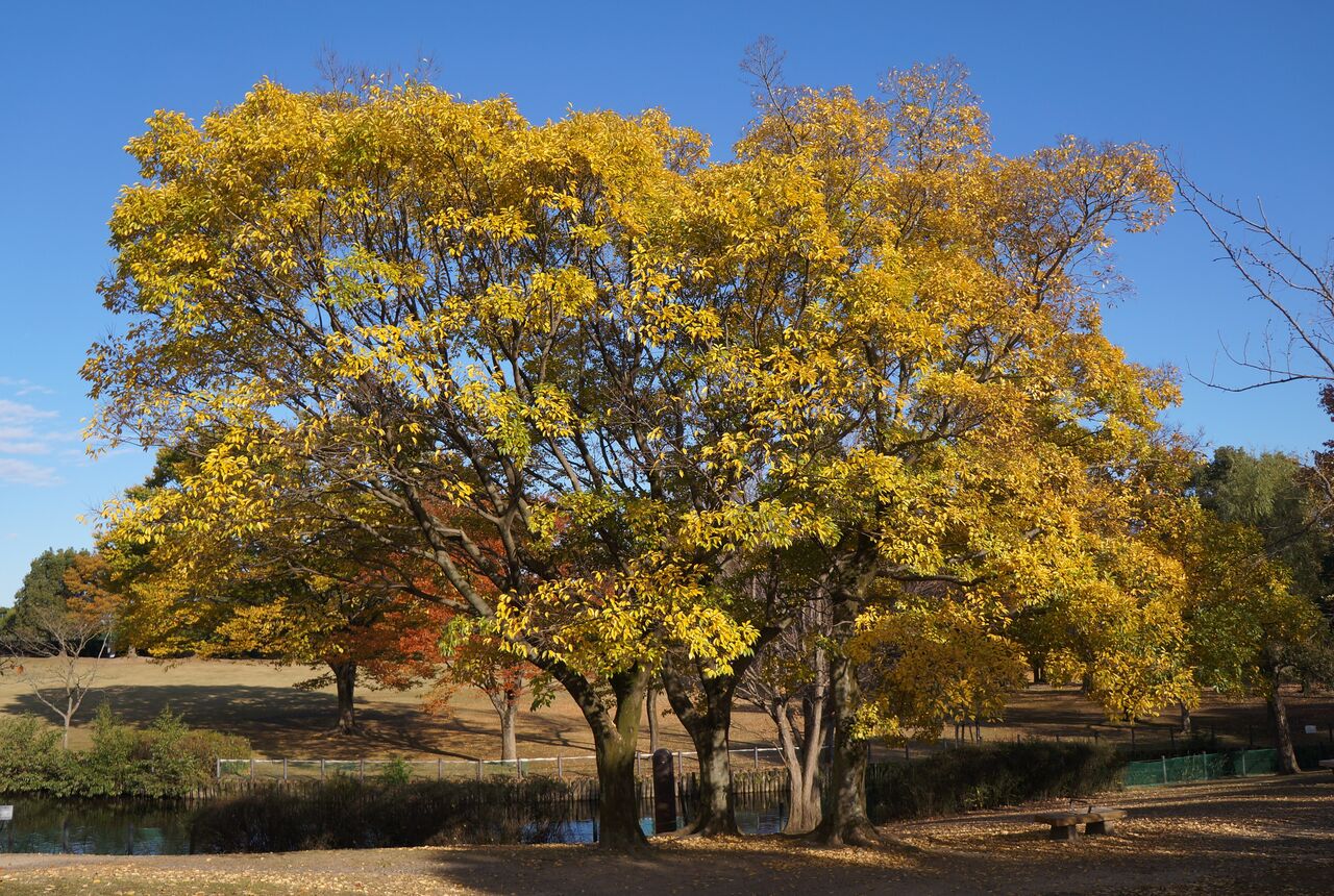 国道沿いのケヤキが綺麗だったので、翌日草加公園のケヤキを見に行った。