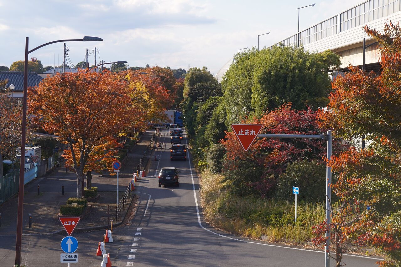 国道298号側道に沿って。上は外環道。