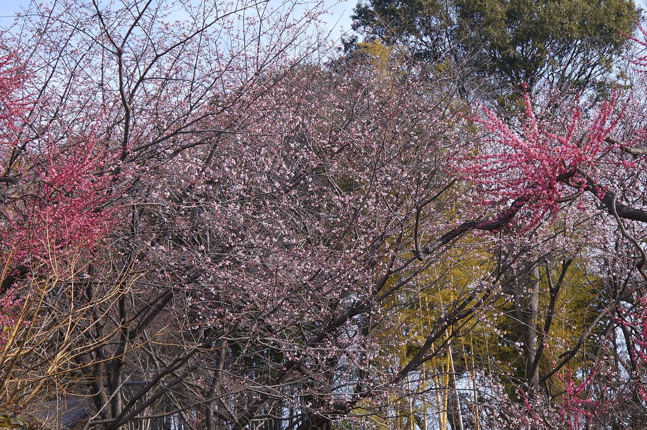 植物振興センター。最後に台地の上から椿寒桜。
